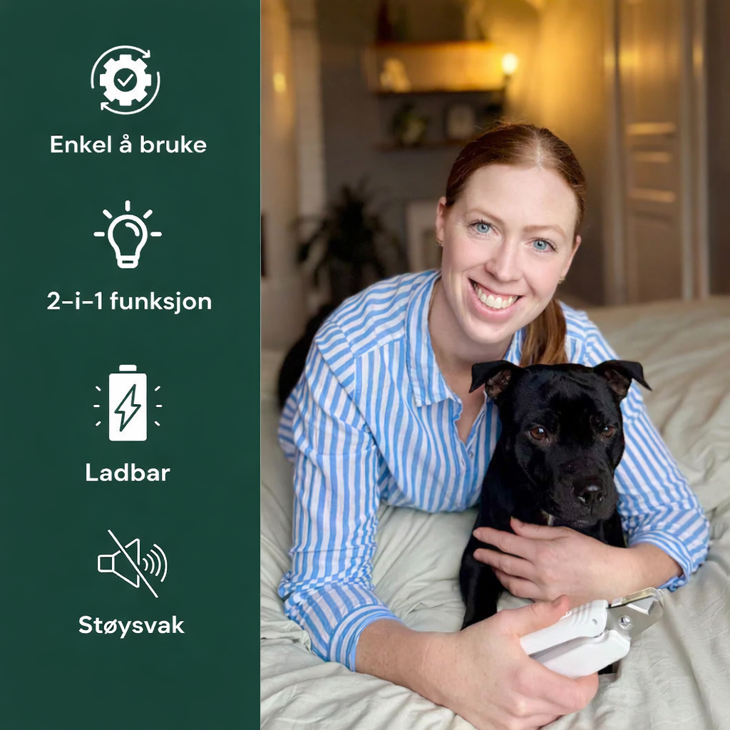Med innebygd LED-lys og sikkerhetslås gjør Klotrim™ Smart kloklipping rask, trygg og helt smertefri – også på mørke klør.